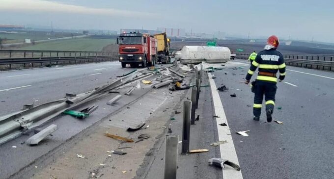 Centrul INFOTRAFIC din Inspectoratul General al Poliției Române informează că pe autostrada A10 Sebeș – Turda, la kilometrul 59, în zona localității Unirea, județul Alba, s-a produs un accident rutier în care au fost implicate un autoturism, o autoutilitară și o autocisternă fără încărcătură periculoasă.