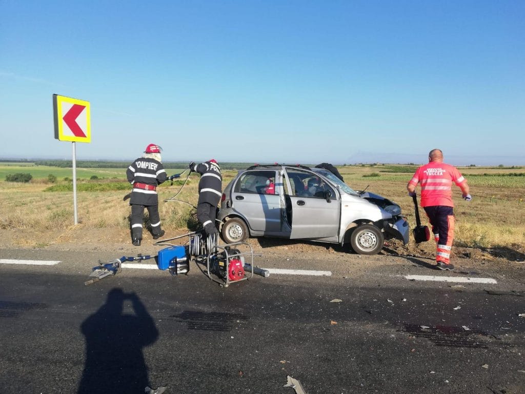 În urma accidentului a rezultat ranirea conducatorului de 76 de ani si a trei pasageri din același autoturism.
