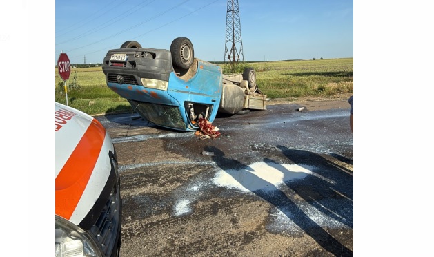 Un autovehicul s-a răsturnat, două persoane, femeie și bărbat, fiind rănite.
