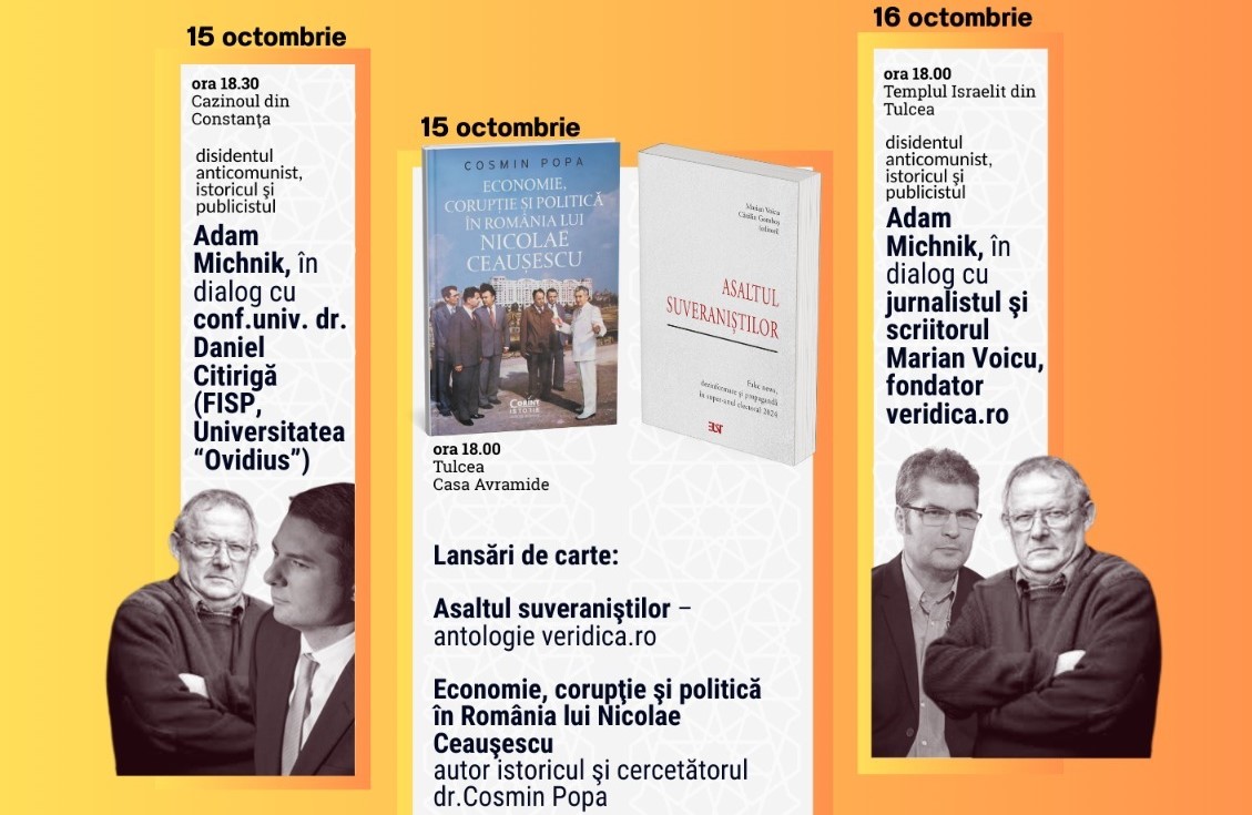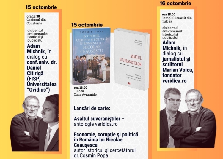 Primăria Municipiului Tulcea, în parteneriat cu Federația Comunităților Evreiești din România și Comunitatea Evreilor din Tulcea, are onoarea de a anunța organizarea conferinței-dialog susținute de către Adam Michnik, bine-cunoscutul dizident, eseist și jurnalist polonez, împreună cu jurnalistul Televiziunii Române, Marian Voicu.