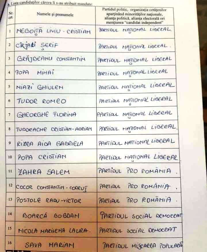 Iată lista completă cu cei care obţin mandate de aleşi locali la Cernavodă, cu precizarea că Liviu Negoiţă a fost reales primar. În locul lui va intra, în CL, următorul din lista de candidaţi ai PNL: