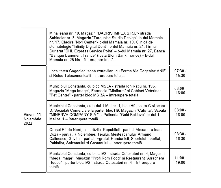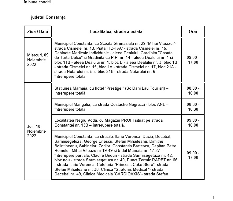 E-Distribuție Dobrogea a anunțat mai multe întreruperi în perioada 9 – 11 noiembrie, care se vor realiza pentru a asigura capacitatea rețelei de a funcționa și alimenta clienții în bune condiții.