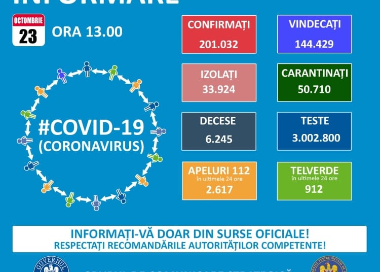 Situație îngrijorătoare la nivelul județului Constanța: în ultimele 24 de ore a fost înregistrat cel mai mare număr de infectări, înregistrate într-o singură zi: 129 de cazuri noi. Până astăzi, 23 octombrie, pe teritoriul României, au fost confirmate 201.032 cazuri de persoane infectate cu noul coronavirus (COVID – 19).
