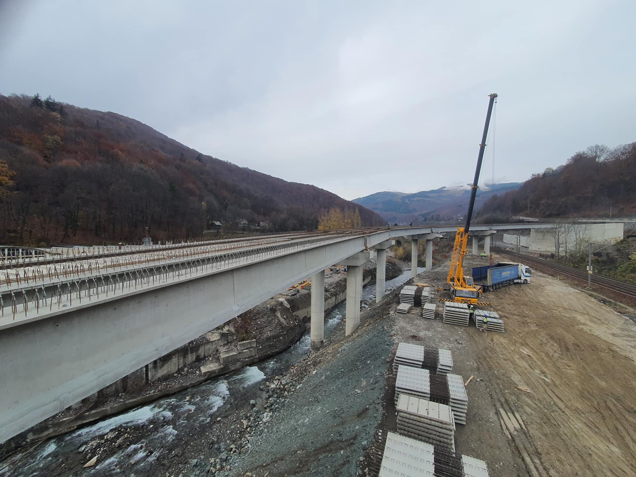● a început montarea grinzilor, fiind deja finalizate pe primele 5 deschideri ale pasajului