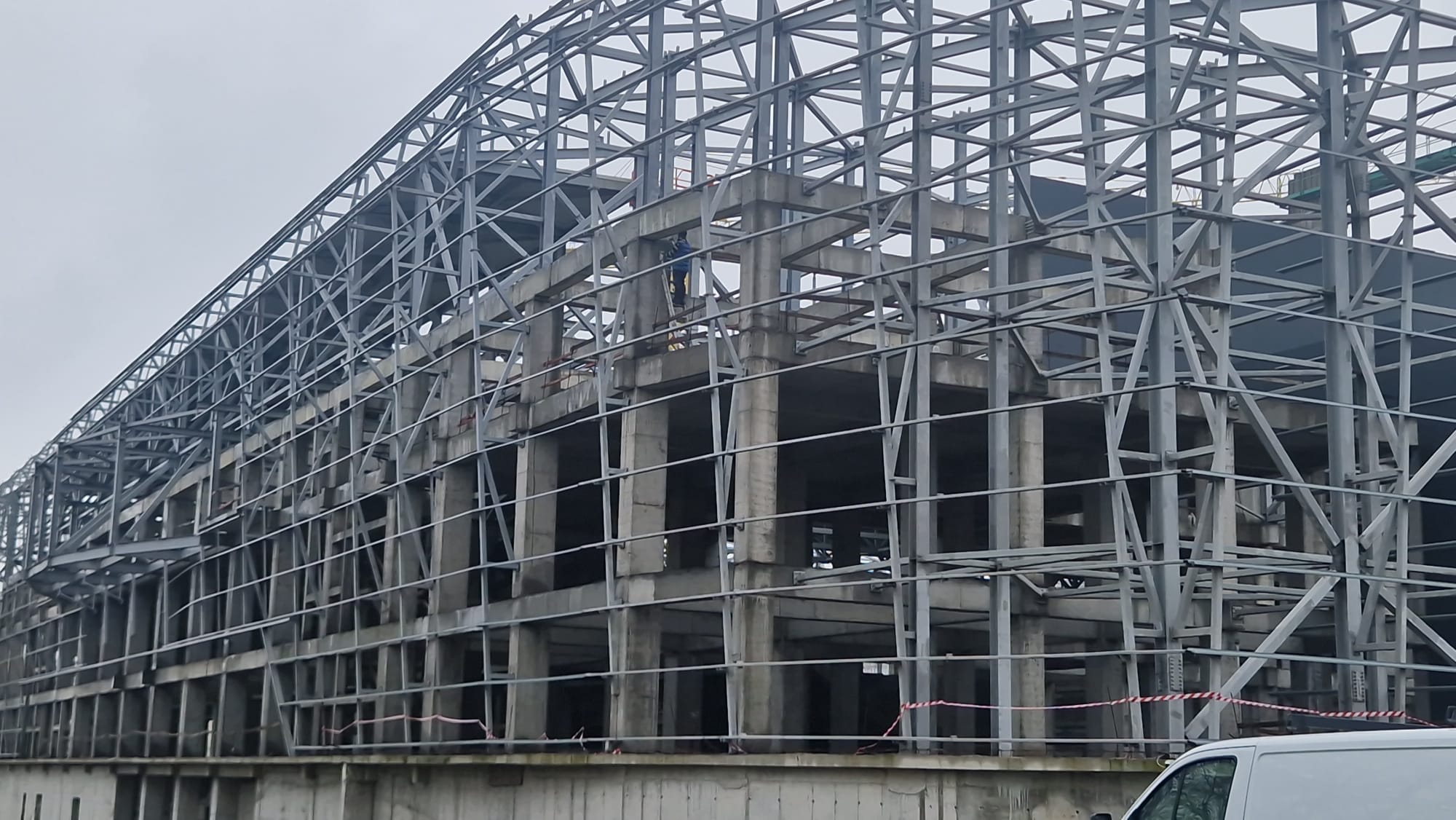 După mai bine de un an, lucrările la Sala Polivalentă din Constanța au fost reluate și sunt speranțe ca în vara anului viitor să se încheie. Acestea au reînceput în data de 16 martie 2026, iar în prezent se lucrează la structura acoperişului clădirii, o etapă foarte importantă pentru închiderea construcţiei.