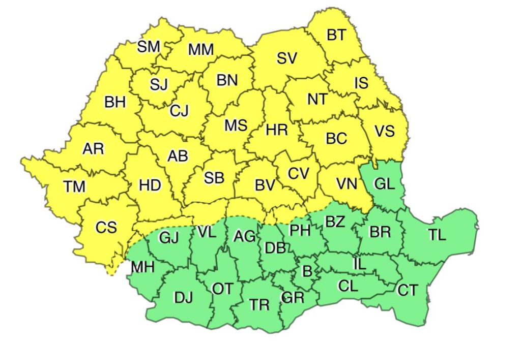 Administrația Națională de Meteorologie (ANM) a emis o atenționare cod galben de furtuni, pentru mai multe județe din țară, valabilă până luni, la ora 06:00.