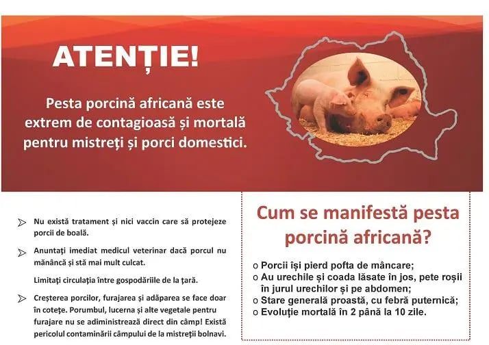 Este interzis transportul suinelor în afara exploatațiilor fără avizul medicului veterinar. Proprietarii de animale sunt rugați să respecte regulile de igienă și să limiteze contactul animalelor proprii cu alte suine din gospodării vecine.