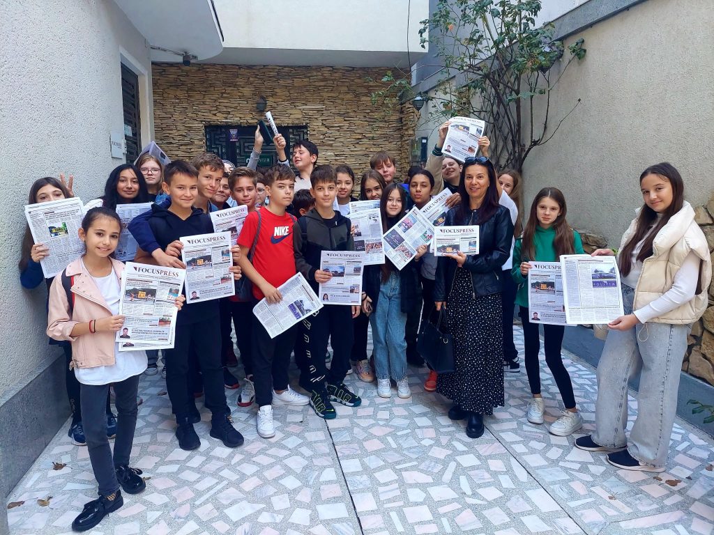 Încă de la intrarea în redacție, am înțeles că experiența va fi plăcută, fiindcă ochii ne-au fost atrași, ca de un magnet, de bomboanele care se relaxau, citind jurnalul Focus Press, ediție aniversară, în format tipărit. Am înțeles rapid, fără a avea nevoie de prea multe explicații, deși ne aflam, după cum spunea doamna dirigintă, în „Țara Cuvintelor”, că atât bomboanele, cât și ziarele ne așteptau pe noi. Aici, am descoperit multe lucruri incitante, de la platoul de filmare, care ne-a încins imaginația și ne-a făcut să ne dorim să fim noi înșine reporteri, respectiv invitați de seamă care să acorde interviuri sub lumina reflectoarelor, la felul în care sunt documentate articolele de presă, cum sunt redactate acestea și cum sunt împărțite sarcinile între jurnaliști, în funcție de domeniul de activitate al fiecăruia.