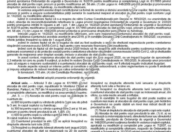 Majorarea alocațiilor pentru copii a apărut în Monitorul oficial. Aceasta se aplică începând cu luna august 2020, adică de astăzi, ceea ce înseamnă că în septembrie copiii vor lua prima majorare a alocației.
