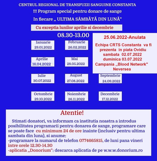 Calendarul caravanelor mobile BLOOD NETWORK 2022