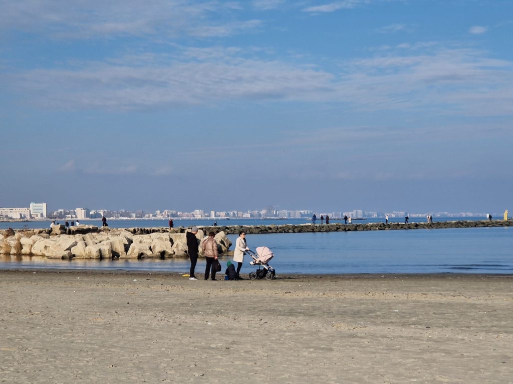 Astfel, plaja din Mamaia a fost destul de animată în prima zi din an, oamenii ieșind cu mic cu mare la o ”porție” de aerosoli, mișcare și peisaje relaxante.