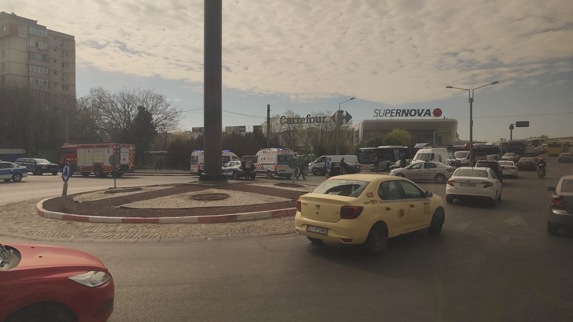 Un accident rutier a avut loc miercuri, 29 aprilie, în zona cunoscută ca Supernova din municipiul Constanța, fostă Cora Brătianu.