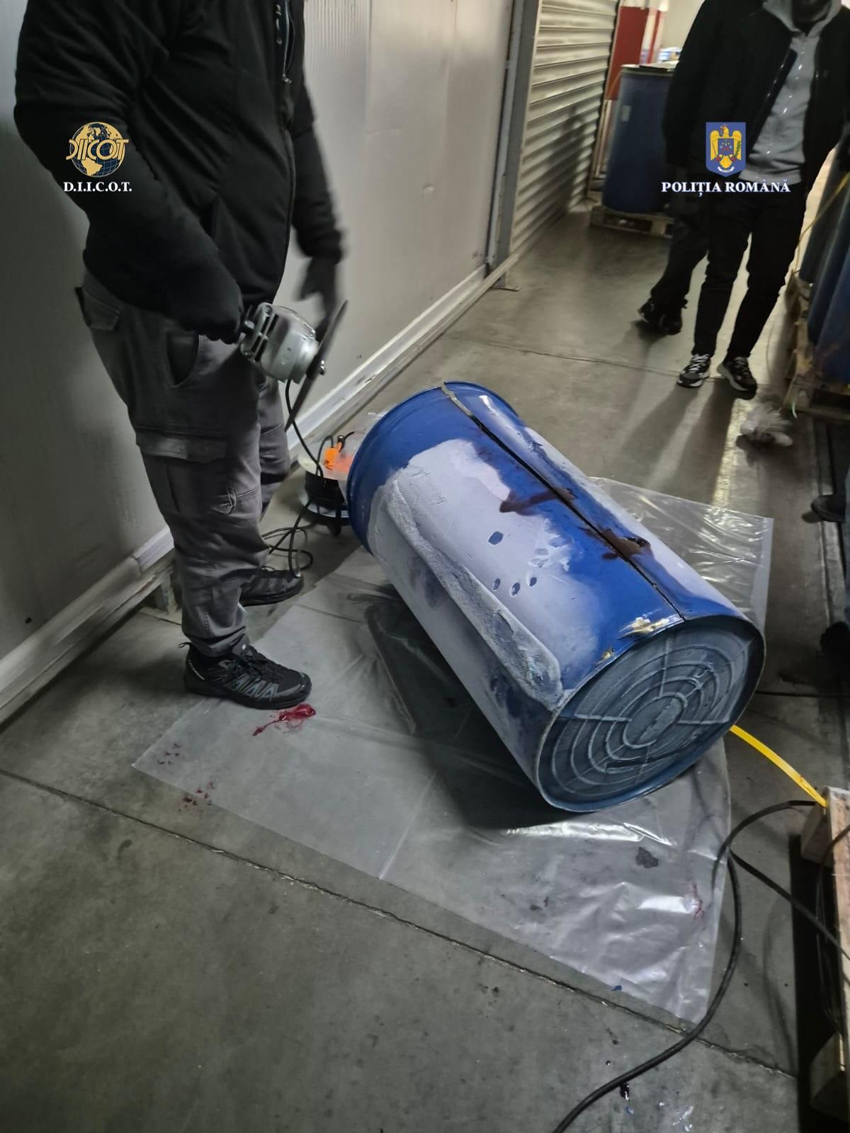 Transpordarea s-a efectuat din containerul maritim suspect care conținea 75 de butoaie din metal, iar cantitatea netă a unui butoi era de aproximativ 200 kg.