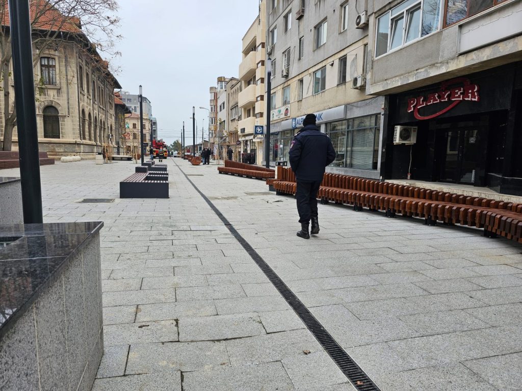 Militarii din cadrul ISU Dobrogea au intrat cu autoscara pe strada Ștefan cel Mare, care este în curs de reabilitare, pentru a reașeza țiglele acoperișului Colegiului Național Mircea cel Bătrân.