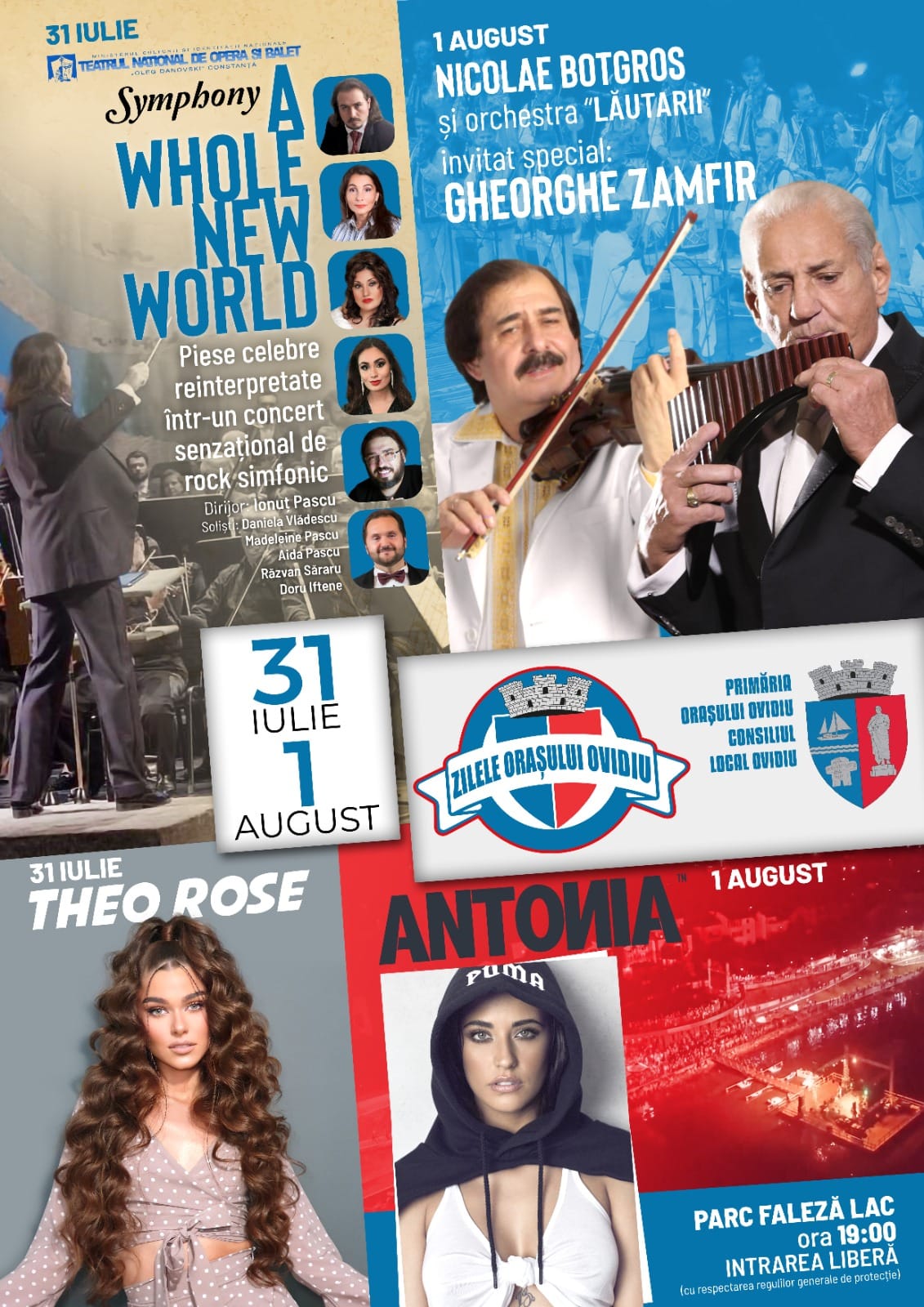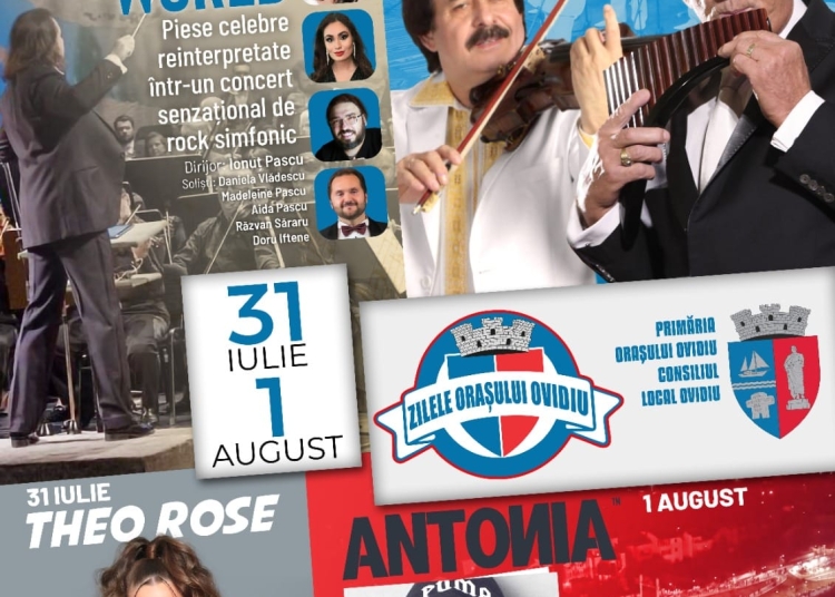 În zilele de 31 iulie și 1 august a.c., Primăria Ovidiu ne invită la mai multe spectacole, pentru a sărbători Zilele Orașului. Unul va fi susținut de Orchestra simfonică a Teatrului Național de Operă și Balet „Oleg Danovski“ Constanța (un concert de muzică pop-rock-simfonică, o reinterpretare a unor celebre șlagăre din repertoriul internațional).