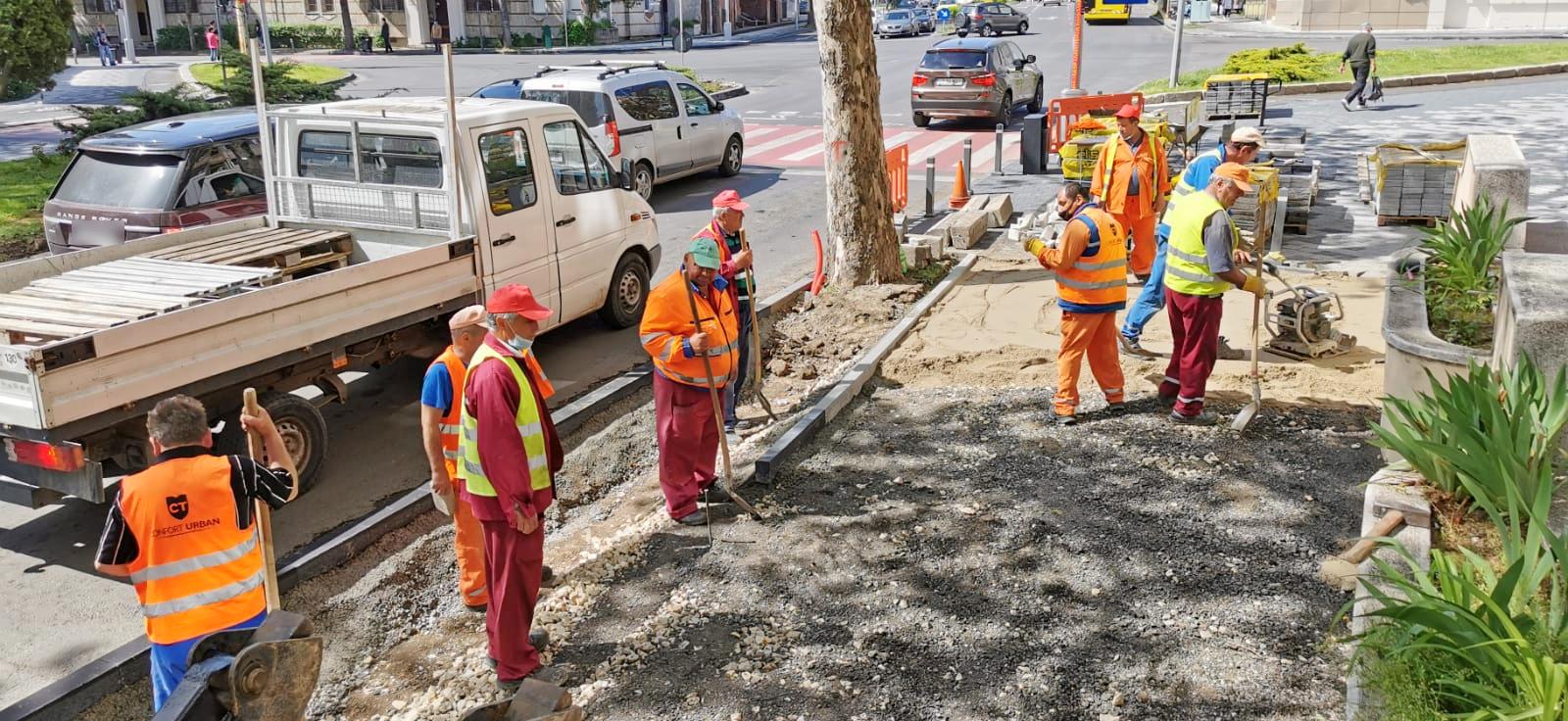 Lucrările de reabilitare a trotuarelor avansează pe strada Unirii, tronsonul delimitat de strada Zorelelor și bulevardul Mamaia. Simultan cu amplasarea pavelelor, se reamenajează zona de spațiu verde.