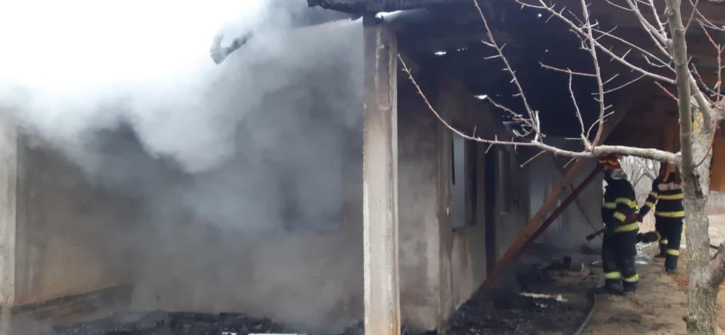 Locuință distrusă de flăcări: incendiul a fost lichidat după 4 ore