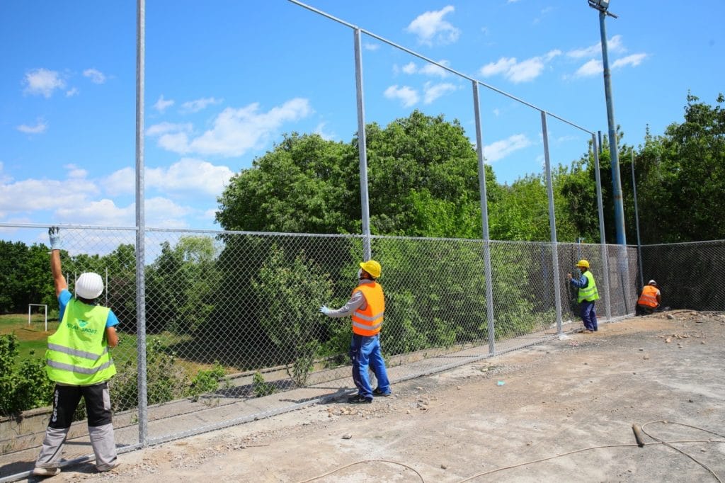 Noul gard va avea înălțimea de 5 metri pe laturile lungi ale terenului și 8 metri în spatele porților, pe laturile scurte. În continuare, constructorii vor monta instalația de nocturnă, gazonul sintetic, 3 seturi de porți de joc, băncile de rezervă și tribunele pentru spectatori.