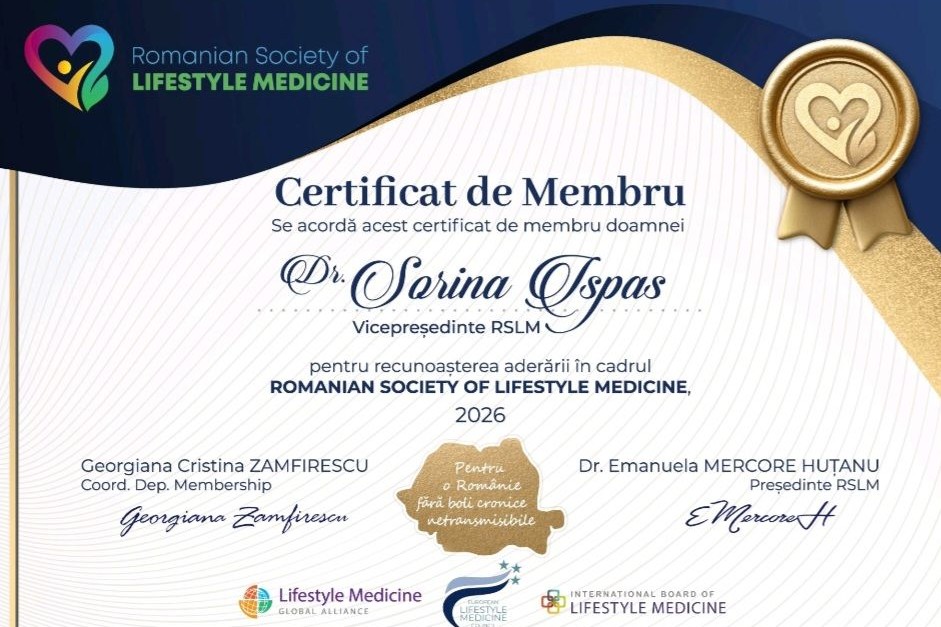 În acest context, parcursul profesional al dr. Sorinei Ispas, completat de performanțe academice internaționale și implicare în organizații de profil, reflectă profilul unui medic modern: conectat la comunitate, activ în educație și dedicat unei medicine centrate pe prevenție și stil de viață.