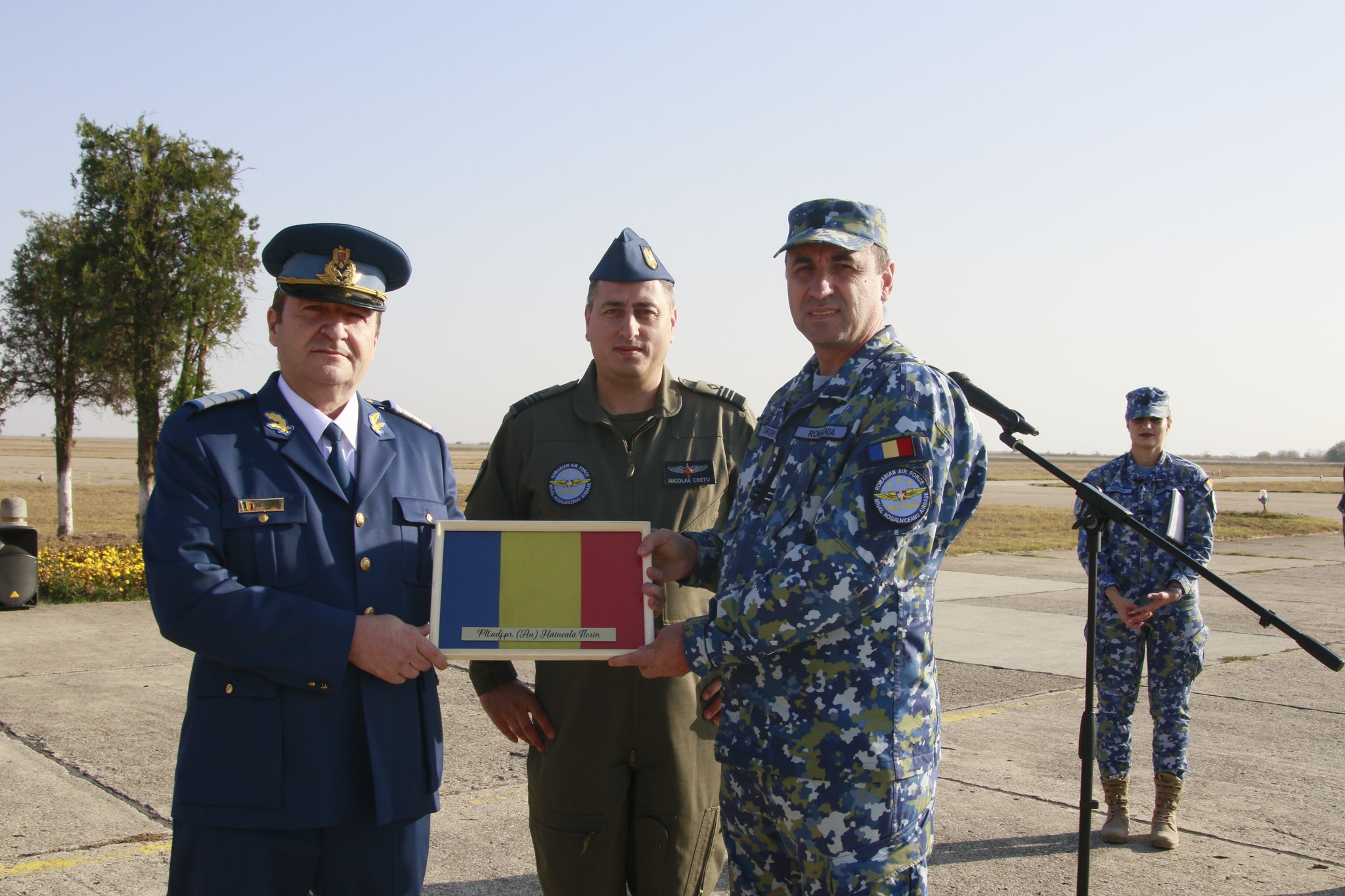 La finalul festivității militarului i-a fost conferit drapelul național arborat de-a lungul timpului pe catargul unității pentru a evidenția legătura strânsă dintre Baza Aeriană și personalul trecut în rezervă.