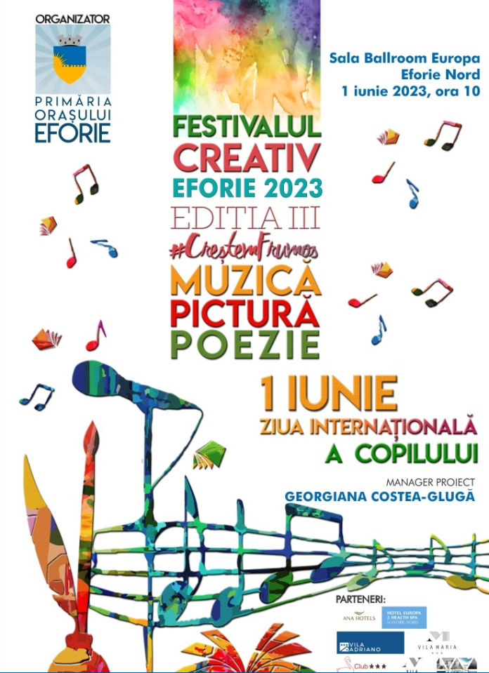 Câteva zile ne despart de Festivalul Creativ Eforie 2023 #CreștemFrumos care este organizat, ocazia Zilei Internaționale a Copilului, la inițiativa sopranei Georgianei Costea, cu sprijinul Primăriei orașului Eforie.