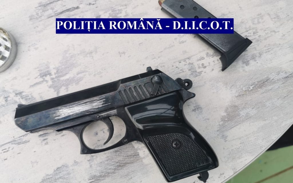 • În urma percheziției a fost găsit un pistol. FOTO DIICOT