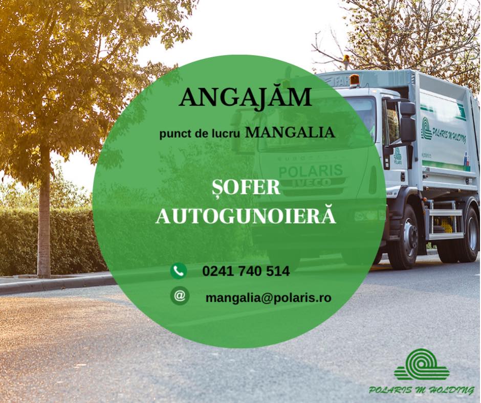 Polaris M Holding angajează șofer autogunoieră la Mangalia. Cerințe: permis de conducere categoria C, atestat profesional de transport marfă.