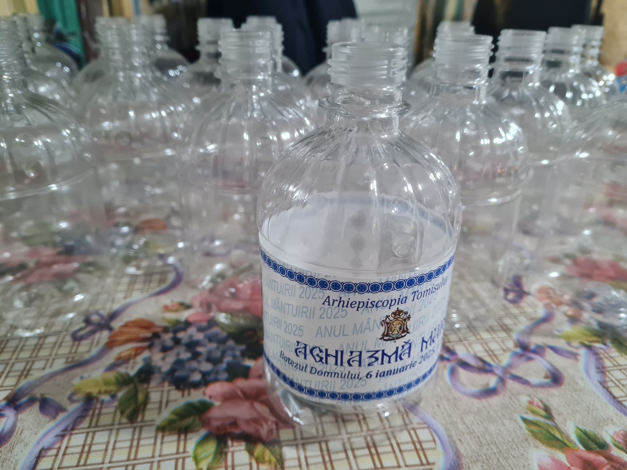 Ei pregătesc PET-urile ce vor fi apoi îmbuteliate cu apă sfințită în Ajunul Bobotezei. Sticlele etichetate vor fi apoi umplute cu agheasmă din butoaiele ce vor fi instalate în fața Catedralei Arhiepiscopale „Sfinții Apostoli Petru și Pavel” din Constanța.