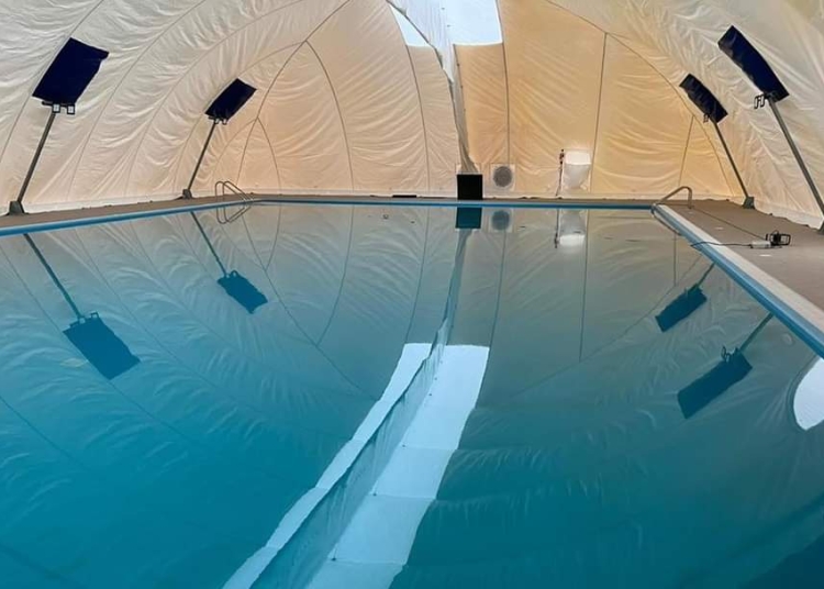 Bazinul de înot semiolimpic este o construcție complet nouă, cu acoperiș de tip “balon” care asigură o diferență de temperatură de maximum 10 grade între apă și mediul ambient. Apa este permanent încalzită, monitorizată și tratată, cu un nivel corespunzător al PH-ului, activitățile în bazin fiind posibile pe toată perioada anului. Construcția este prevazută cu vestiare, instalație de recirculare, filtrare, încălzire și tratare, conform normativelor europene. Umiditatea din aer este controlată și menținută în limite conforme prin aerisire permanentă. Regulile de acces din punctul de vedere al sănătații, igienei, echipamentului, precum și al respectării circuitelor vor fi stricte.