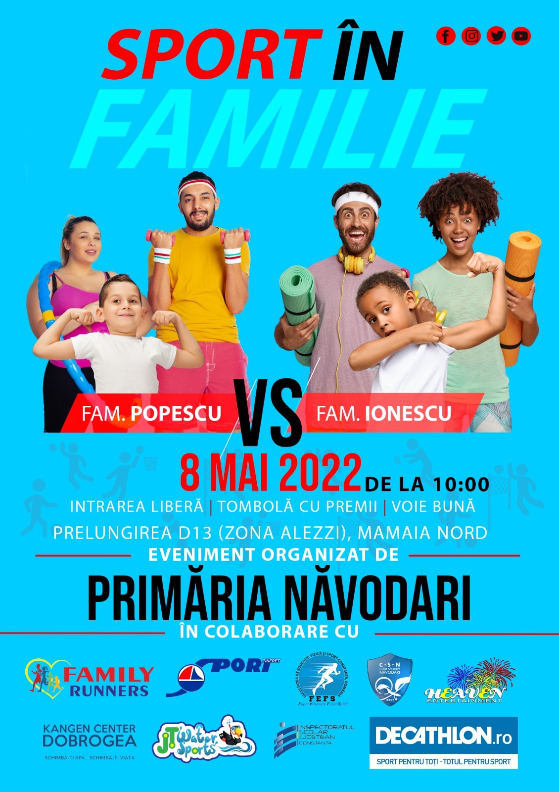 Costel Dumitrașcu, viceprimarului orașului Năvodari anunţă că primăria organizează evenimentul „Sport în Familie”, dedicat tuturor locuitorilor. Sunt invitați să participe toți locuitorii, de la mic la mare, duminică, 8 mai a.c.