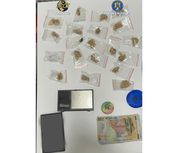 În urma perchezițiilor efectuate, au fost găsite și ridicate cantitățile de aproximativ 100 grame 3-CMC, cunoscut sub denumirea generică de cristal (drog de mare risc), 80 grame canabis (drog de risc), 34 grame rezină de canabis (drog de risc), plicuri autosigilante, precum și alte mijloace de probă.