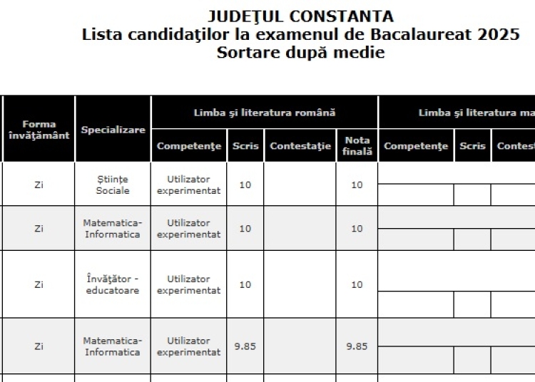 Rezultatele la bacalaureat 2025 au fost publicate. Două medii de 10 în județul Constanța, între care una la Mangalia
