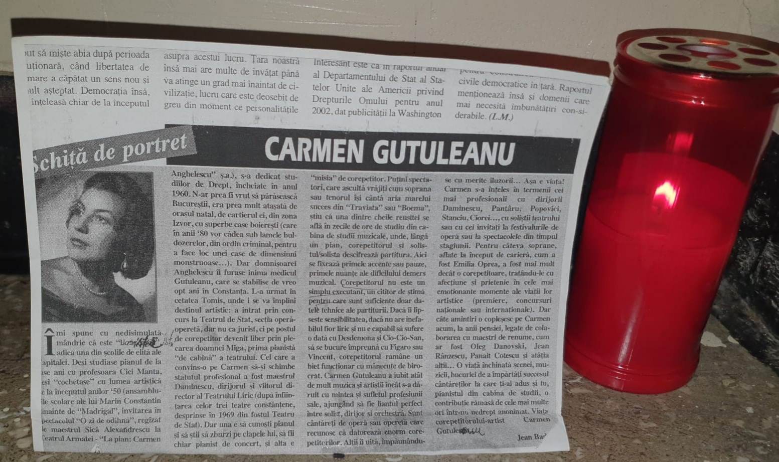 Carmen Gutuleanu, artistă a Teatrului de Stat Constanța a trecut în neființă în seara de 22 noiembrie în apartamentul său din Constanța, la vârsta de 86 de ani.