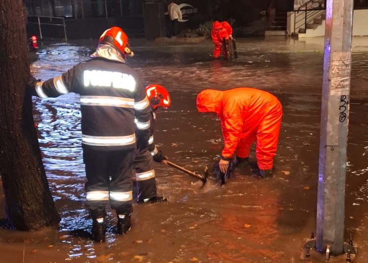 Echipajele Inspectoratului pentru Situații de Urgență Dobrogea intervin pe două străzi inundate din Constanța.
