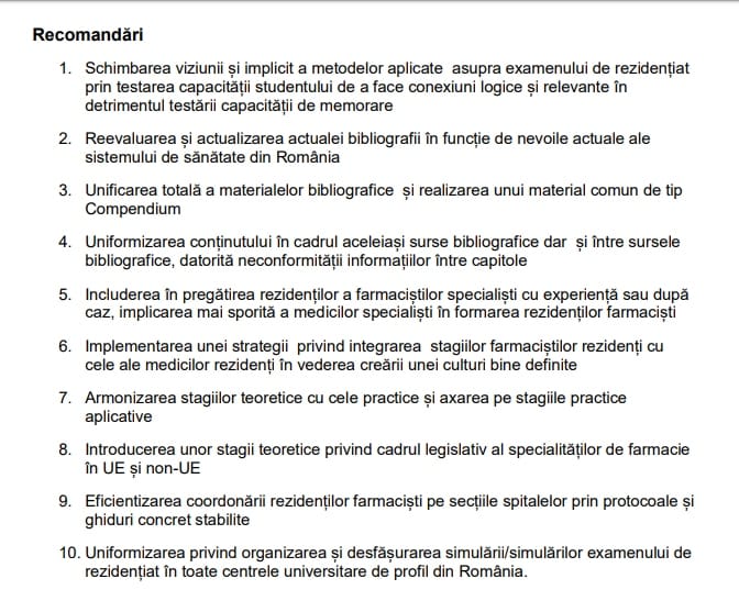 Federaţia Asociaţiilor Studenţilor în Medicină din România (FASMR), forul care reuneşte 11 organizaţii studenţeşti medicale, reprezentând în total peste 25.000 de studenţi la medicină, subliniază necesitatea reevaluării şi actualizării bibliografiei Examenului de Rezidenţiat. Astfel, în lumina numeroaselor nemulţumiri ale studenţilor şi multiplelor modificări ale bibliografiei în ultimii ani, precum şi necesitatea certitudinii în privinţa Examenului de Rezidenţiat, FASMR consideră necesară introducerea într-o comisie multidisciplinară a reprezentanţilor studenţilor şi medicilor rezidenţi pentru soluţionarea dezideratelor susţinătorilor Examenului de Rezidenţiat.