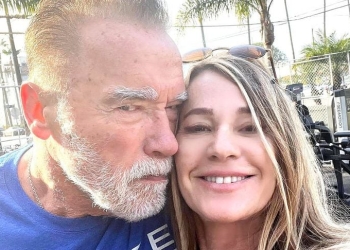 Nadia Comăneci (61 de ani) și Arnold Schwarzenegger (73) au fost filmați împreună în timp ce se antrenau într-un parc ...