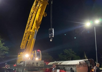 După încelungi eforturi, cisterna încărcată cu motorină care s-a răsturnat în seara de 8 august în sensul giratoriu din Lazu ...