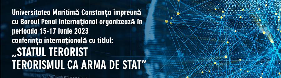 Universitatea Maritimă Constanța împreună cu Baroul Penal Internaţional organizează în perioada 15-17 iunie 2023 conferința internațională cu titlul: „STATUL TERORIST – TERORISMUL CA ARMA DE STAT”.