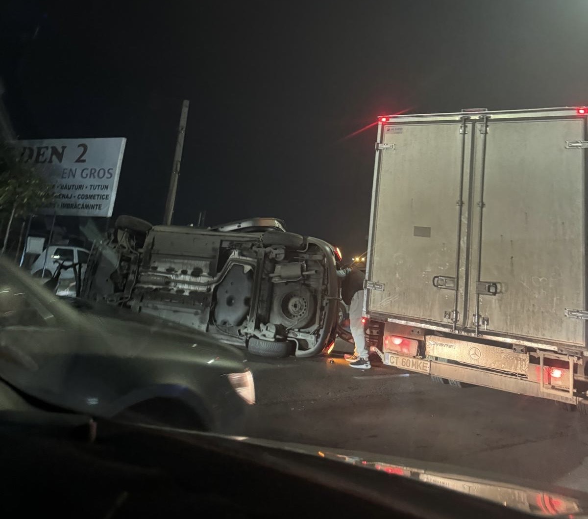 Mașina a fost repusă pe roți de alți participanți la trafic!