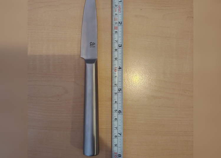În momentul în care a fost oprit de jandarmi, bărbatul a scos din buzunarul de la spate un cuțit de aproximativ 20 cm lungime.