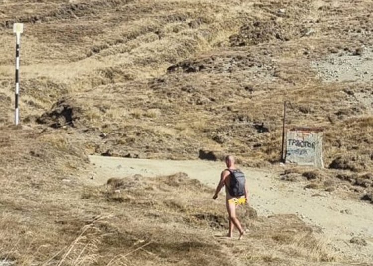 Salvamont a publicat luni, 10 octombrie a.c., fotografii cu un bărbat dezbrăcat care pornise la drumeţie prin Munţii Bucegi.
