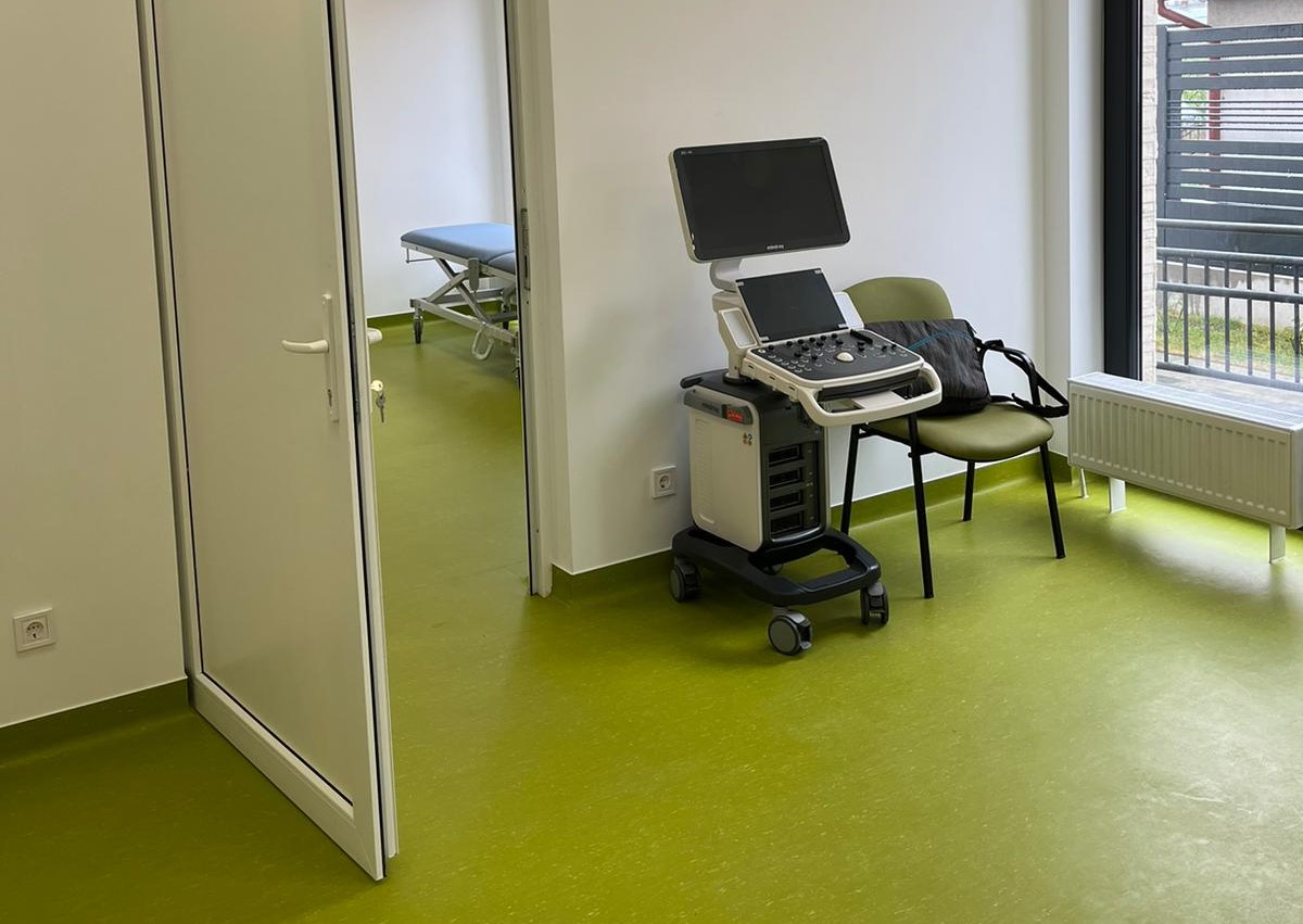 La etaj se va afla un oficiu pentru medici, dotat cu baie, sală de ședințe, birou manager, arhivă, oficiu de curățenie și grupuri sanitare pentru utilizatorii etajului. De asemenea, va fi o zonă alocată pacienților, cabinete de consultații și săli de tratament.