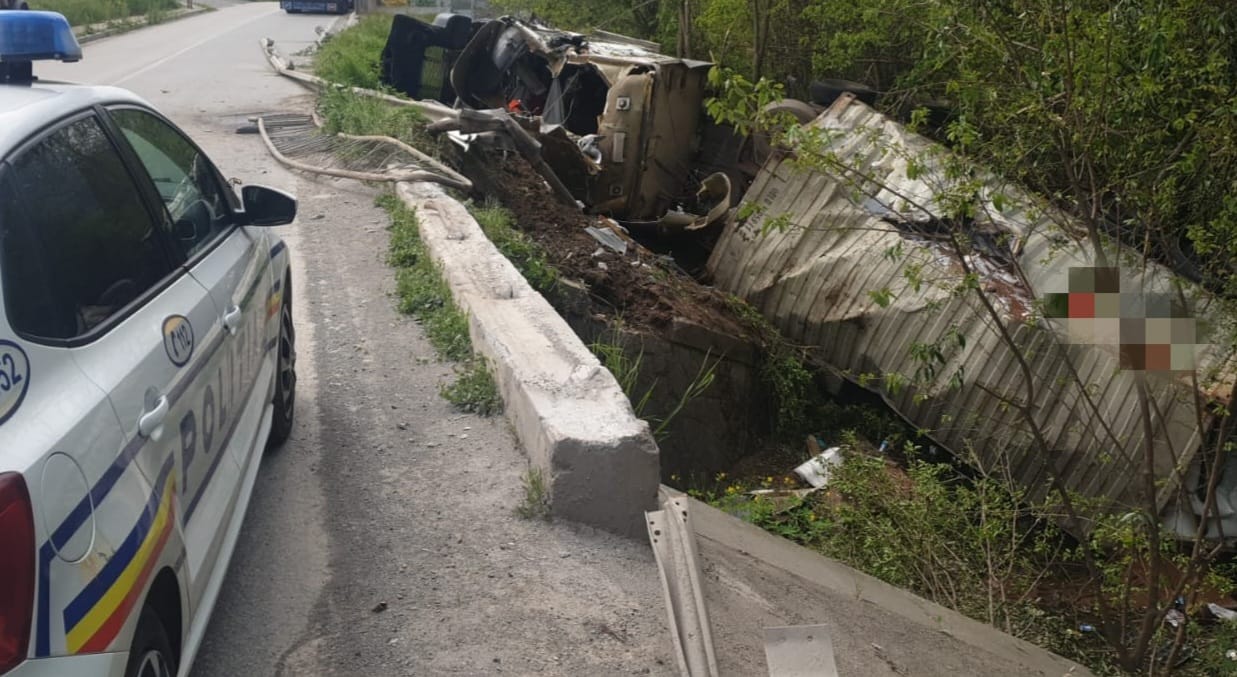 Din primele verificări efectuate de polițiști s-a stabilit faptul că un bărbat de 59 de ani, din Ucraina, care conducea un ansamblu de vehicule format dintr-o autoutilitară și o semiremorcă, pe DJ229A, în localitatea Telița, ar fi pierdut controlul direcției de deplasare într-o curbă la stânga și s-ar fi răsturnat în afara părții carosabile.