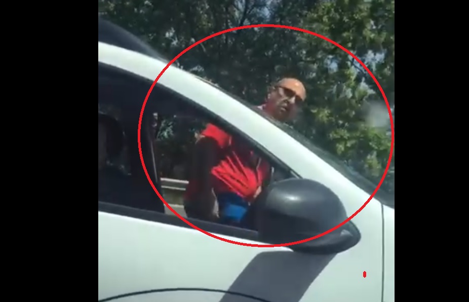 El spune că a avut un conflict cu un bărbat din mașina în care se afla și femeia care l-a filmat, iar acela l-a înjurat.