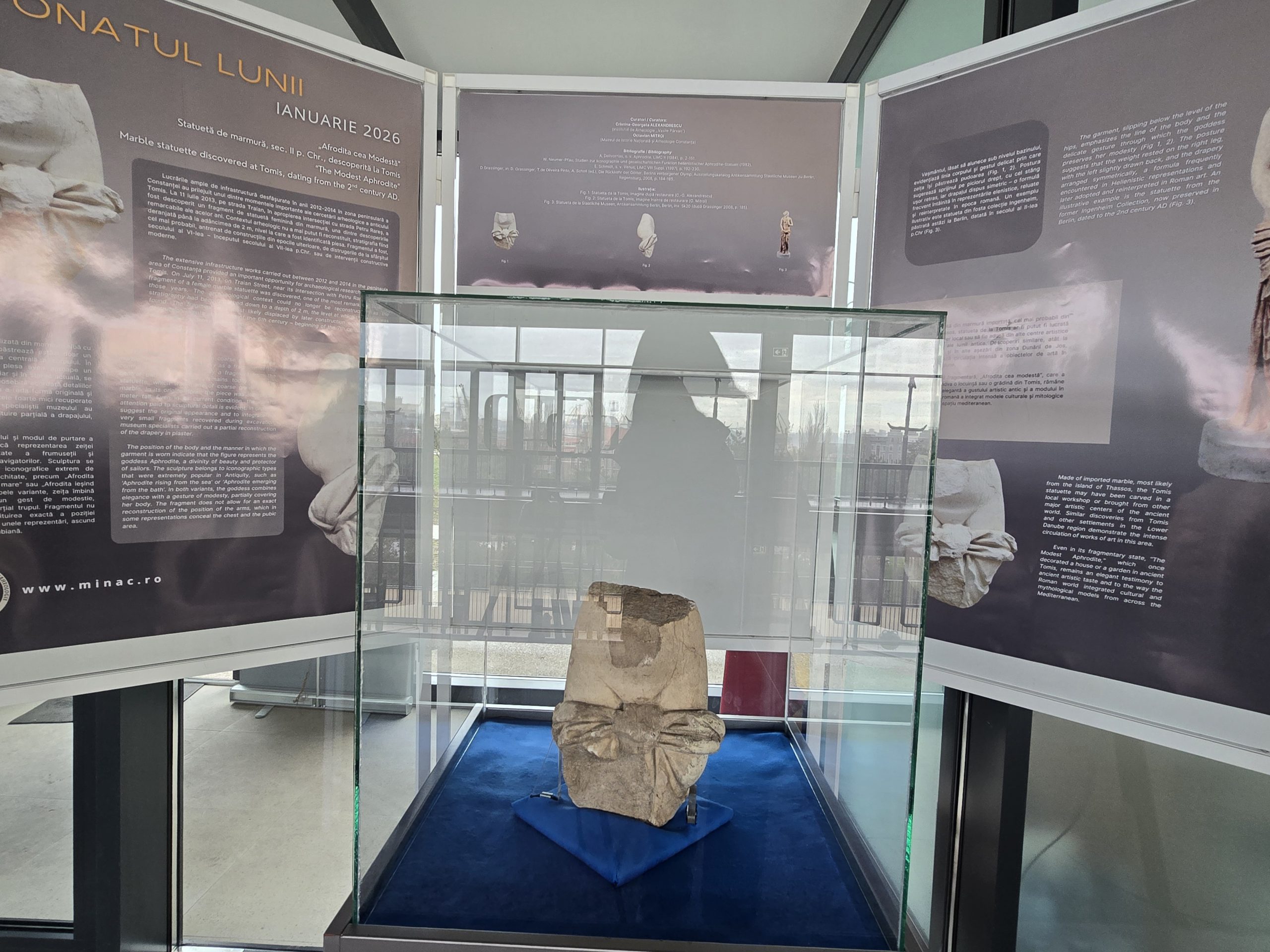 Acest proiect din seria ,,Exponatul lunii” a beneficiat de participarea cercetătoarei Cristina Alexandrescu, de la Institutul de Arheologie «Vasile Pârvan» care a identificat tipul statuar, sursa marmurei din care a fost lucrată statueta și a prezentat o propunere de reconstituire pe baza analogiilor cunoscute (adică sculpturi aparținând acestui tip aflate într-o stare mult mai bună de conservare). ,,Muzeul are in patrimoniul lui și alte astfel de reprezentări ale Afroditei, însă de dimensiuni mai mici decât mărimea naturală”, a mai precizat arheologul MINAC.
