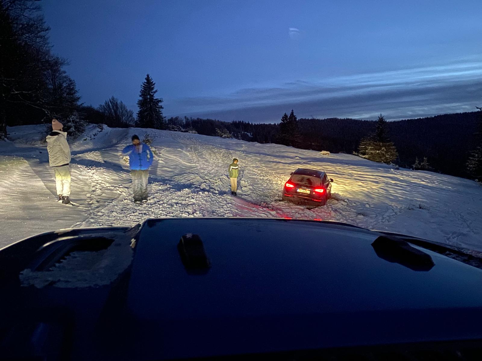Din păcate, în drumul lor de întoarcere spre casă, autoturismul s-a înzăpezit, iar condițiile meteorologice dificile au făcut ca situația să devină mai complicată. Jandarmii montani, însă, au reușit să troleze mașina din zăpadă, asigurându-se că familia poate să-și continue drumul în siguranță.