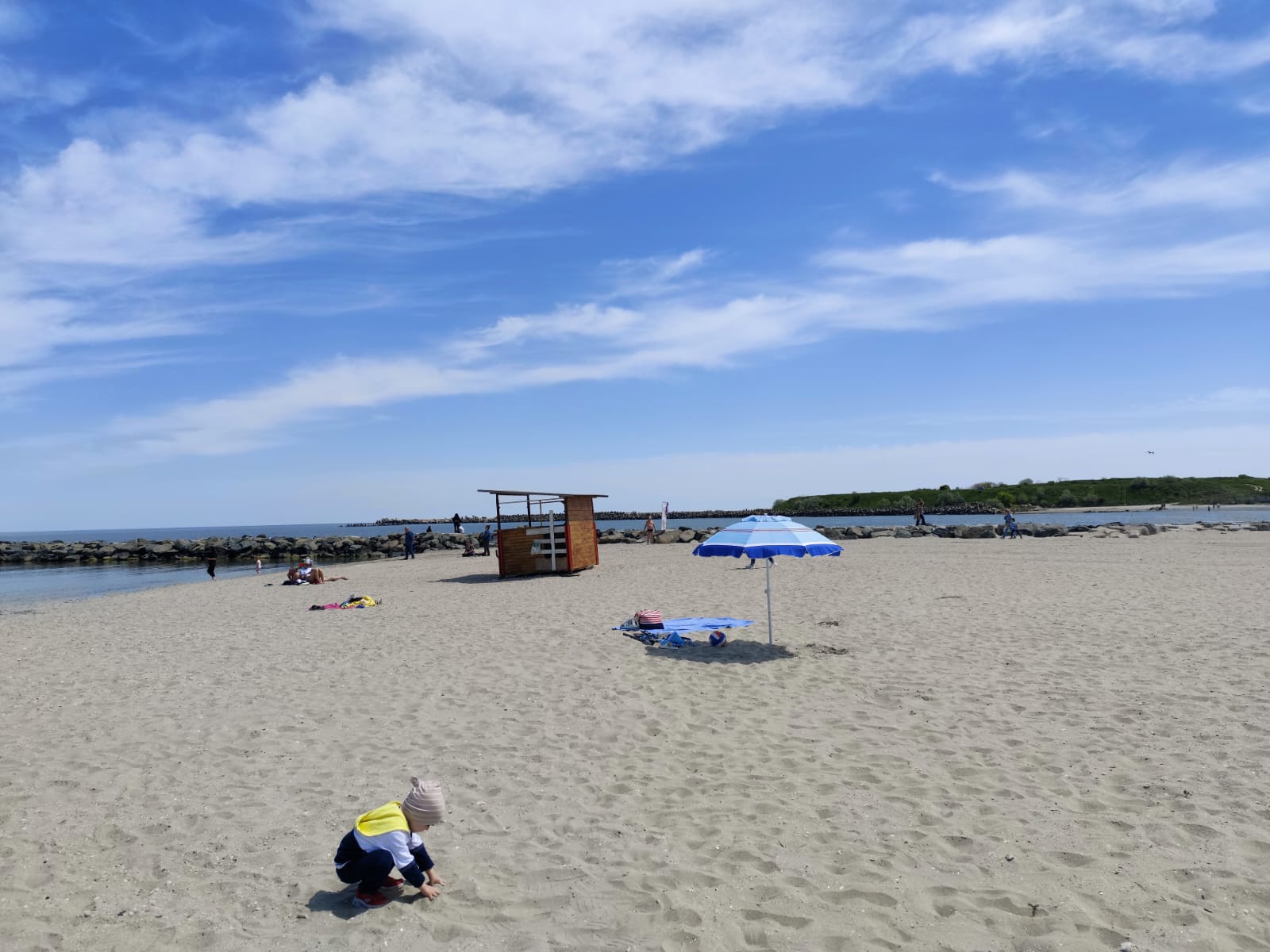 Temperaturile sunt ridicate astăzi la Constanța, maxima zilei fiind de 20 de grade, iar temperatură resimțită este de 25 de grade. Astfel, vremea este tocmai bună pentru a sta pe plajă, în căldura soarelui și în briza mării. În Mamaia plaja a fost deja asaltată de turiști, dar și de constănțenii care profită de această zi liberă.