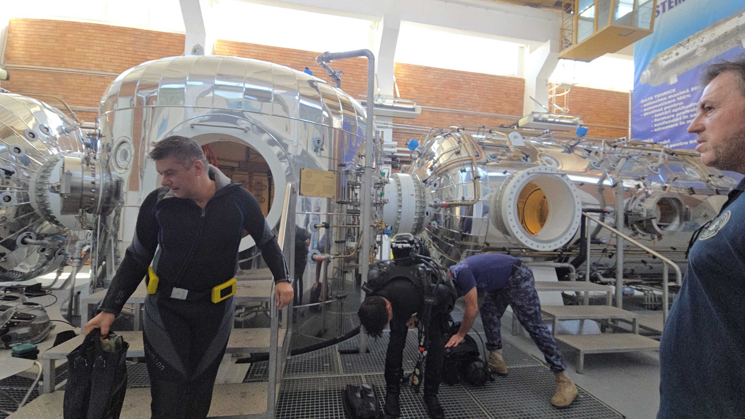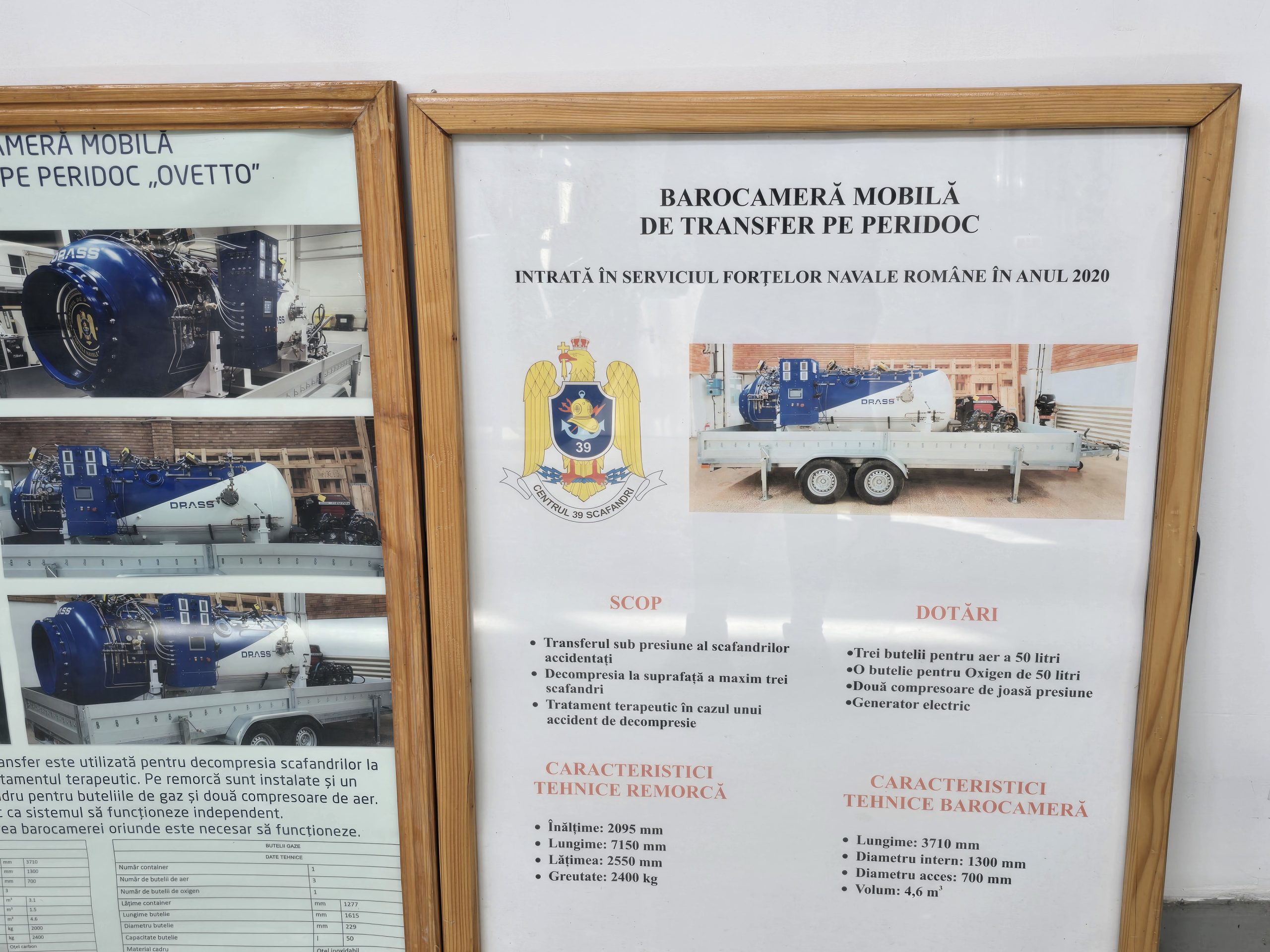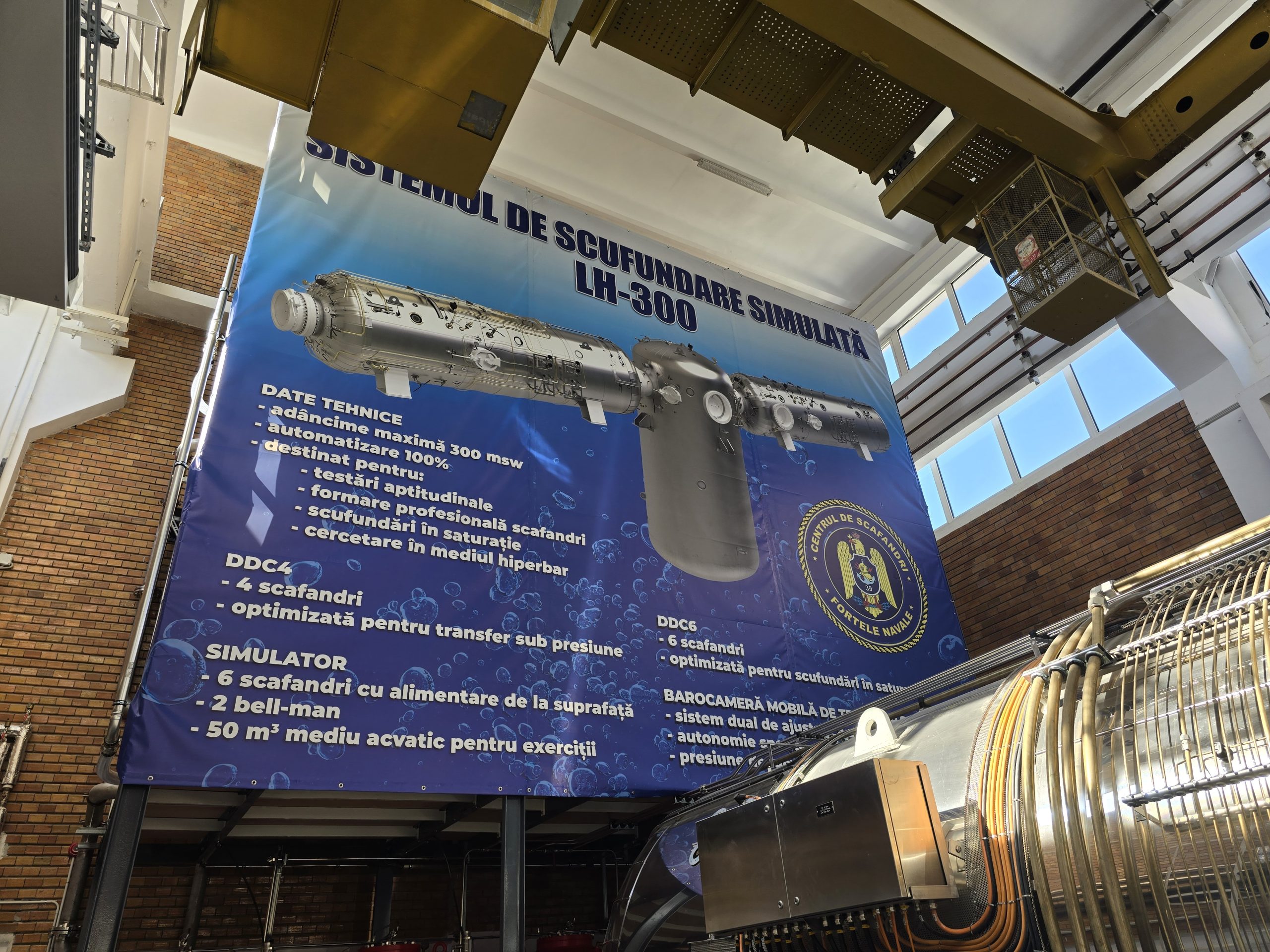 În funcție de exercițiile pe care vrem să le facem, putem simula diverse adâncimi și utiliza diferite tipuri de amestecuri respiratorii, de la heliu cu oxigen (heliox) la nitrox, în funcție de specificul pregătirii sau al exercițiilor. Ultima componentă este barocamera DDC-4, destinată pentru patru scafandri. În mare parte, are același rol ca DDC-6, dar prezintă o particularitate: este prevăzută cu o flanșă specială prin care putem conecta o barocameră mobilă, pentru a putea interveni rapid în cazurile de accidente de decompresie“, a conchis locotenent-comandor Andrei Bursuc, șef Laborator Testare Tehnică și Echipamente în Mediul Hiperbar.