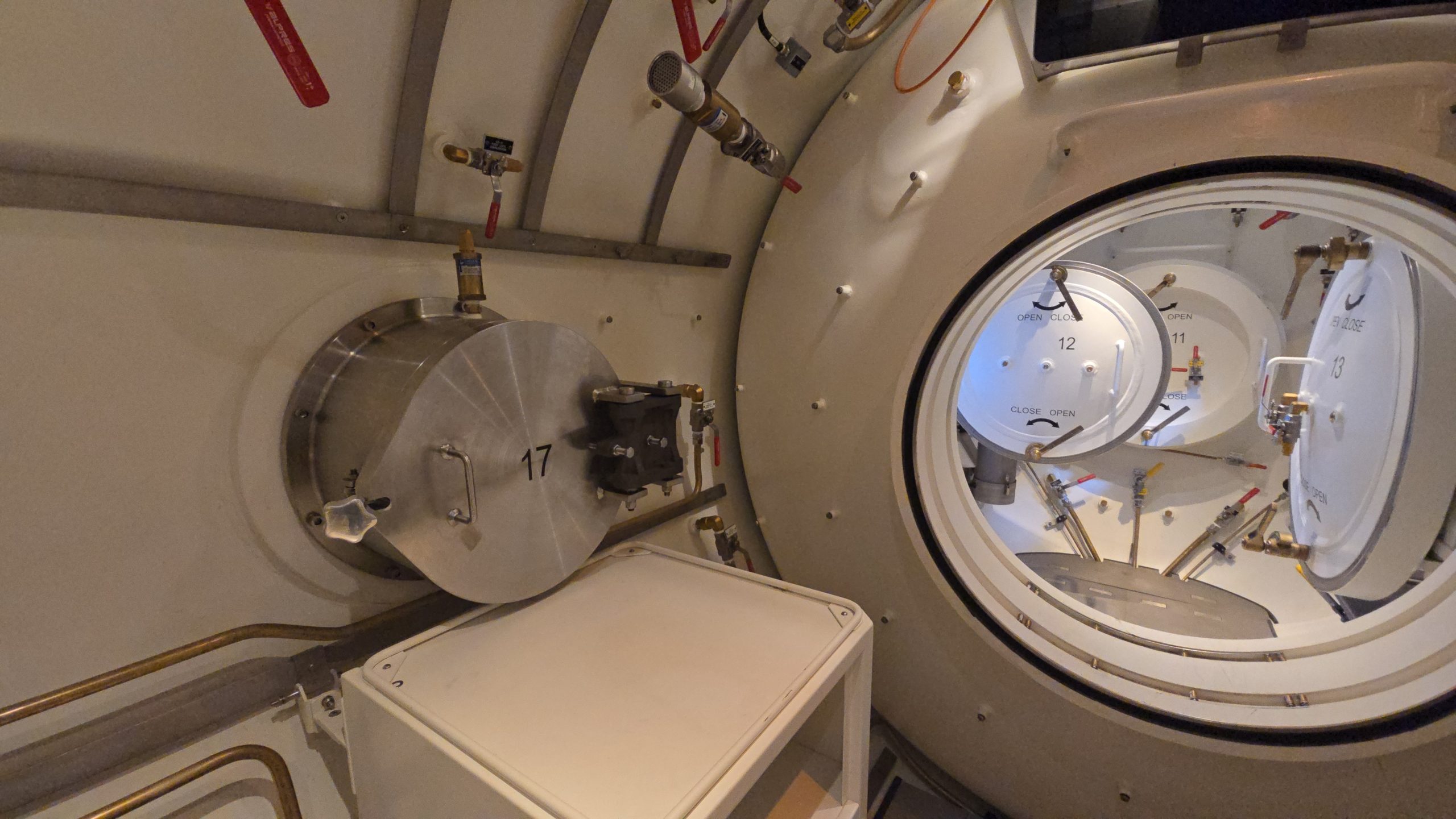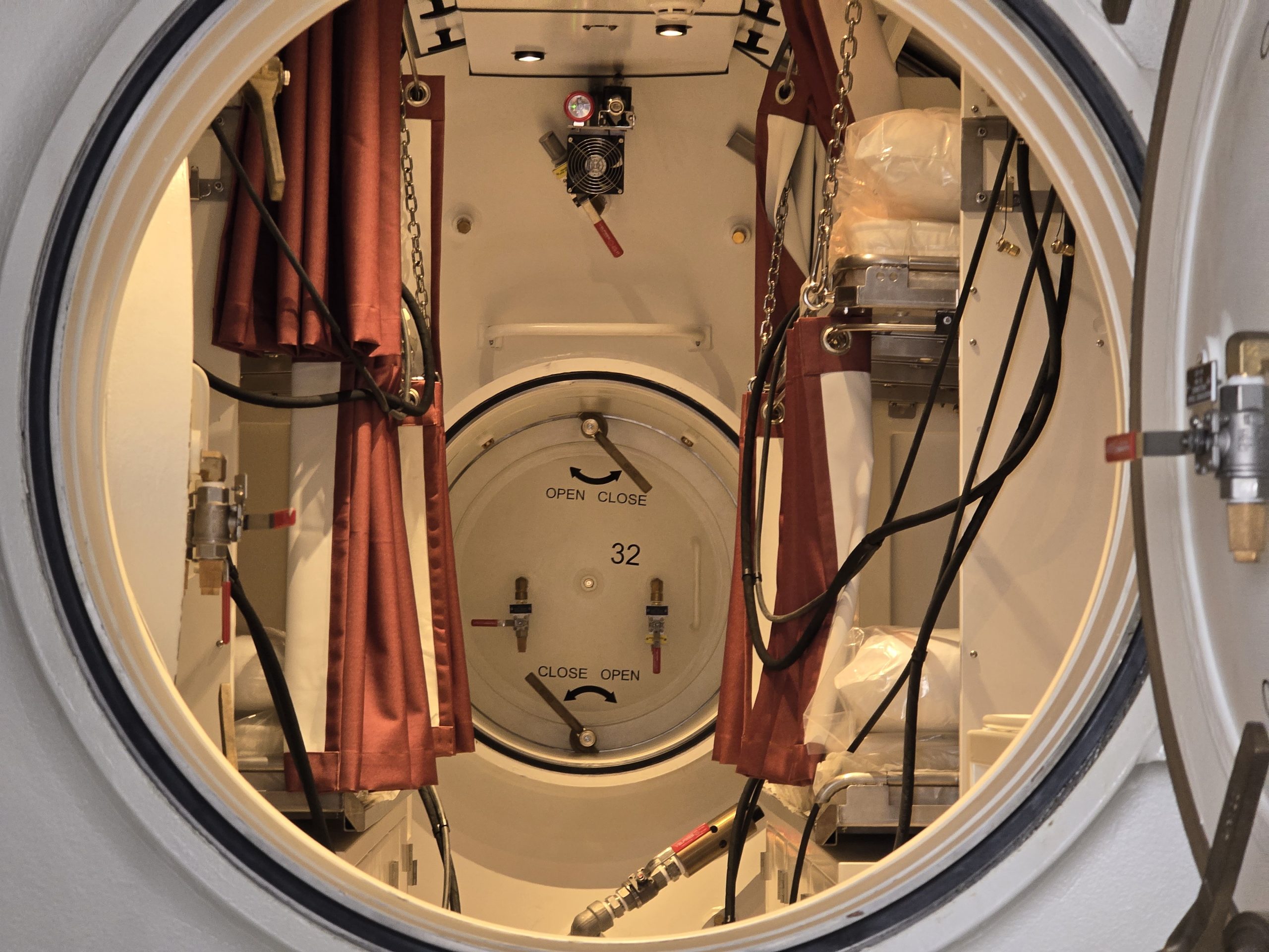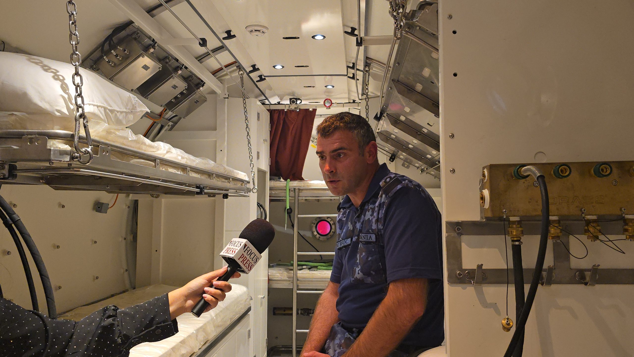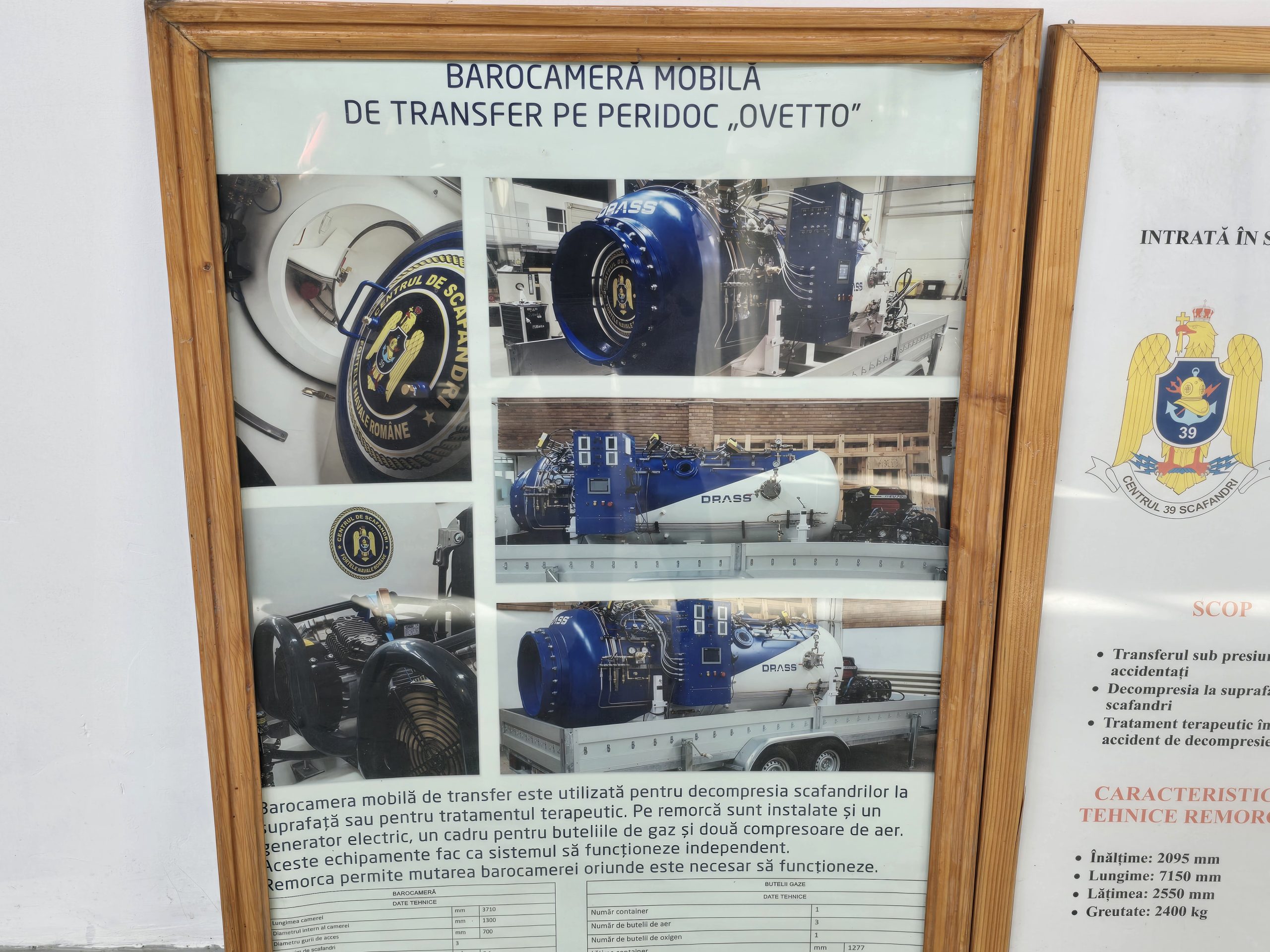 În funcție de exercițiile pe care vrem să le facem, putem simula diverse adâncimi și utiliza diferite tipuri de amestecuri respiratorii, de la heliu cu oxigen (heliox) la nitrox, în funcție de specificul pregătirii sau al exercițiilor. Ultima componentă este barocamera DDC-4, destinată pentru patru scafandri. În mare parte, are același rol ca DDC-6, dar prezintă o particularitate: este prevăzută cu o flanșă specială prin care putem conecta o barocameră mobilă, pentru a putea interveni rapid în cazurile de accidente de decompresie“, a conchis locotenent-comandor Andrei Bursuc, șef Laborator Testare Tehnică și Echipamente în Mediul Hiperbar.