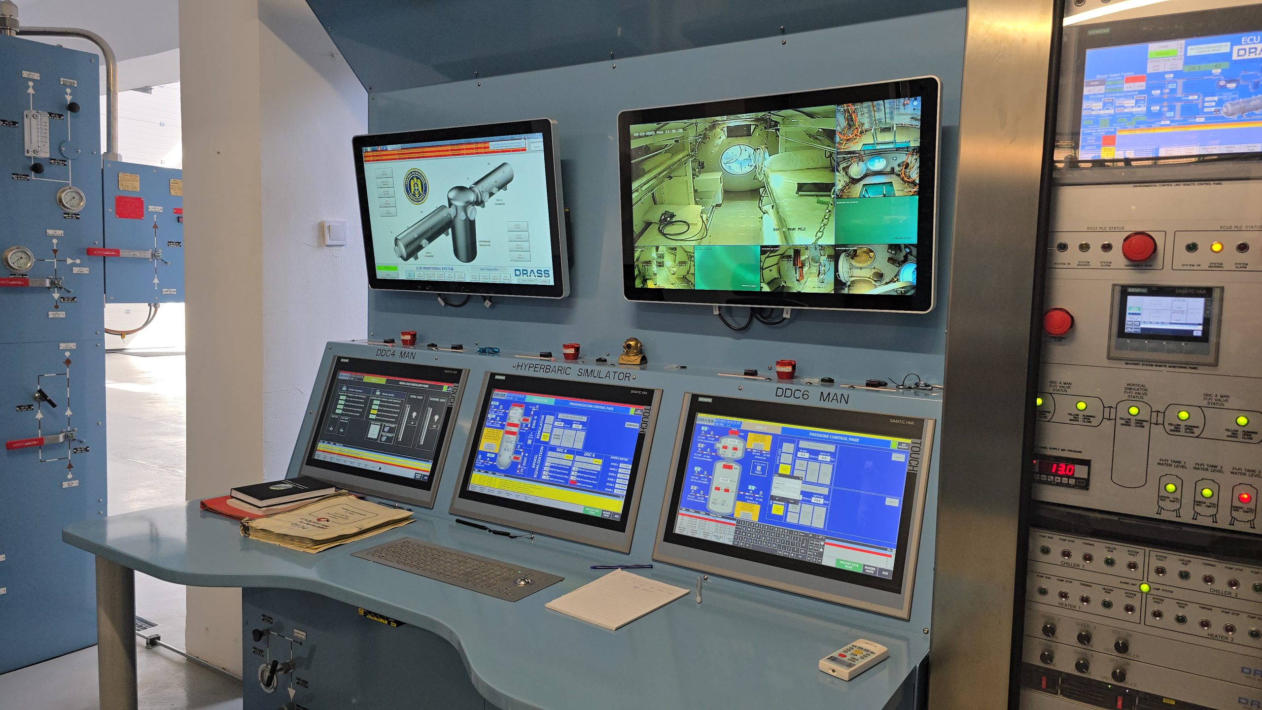 Sistemul de scufundare simulată dispune de un simulator și de două barocamere fixe. „În partea dreaptă avem DDC-6, o barocameră pentru șase persoane – șase scafandri. În partea centrală se află simulatorul de scufundări, tot cu o capacitate de șase scafandri. Este dispus vertical și are o adâncime de 5 metri. Aici putem executa scufundări cu diverse tipuri de echipamente: echipamente de scufundare cu alimentare la suprafață, cu circuit închis, semideschis sau echipamente pentru scafandrii autonomi.